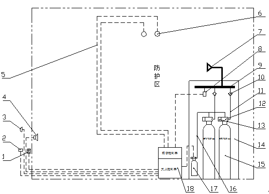 以上是整套柜式七氟丙烷氣體滅火裝置安裝的原理圖,1-18序號中的設(shè)備都是整套柜式七氟丙烷氣體滅火裝置必不可少的裝置。